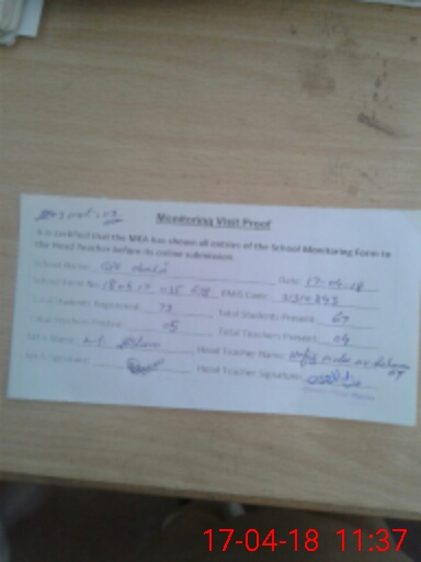 | Attendance Register | Head Teacher | MEA with School | Visit Proof |