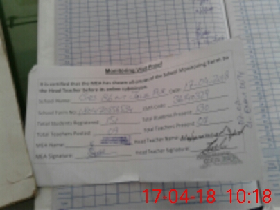 | Attendance Register | Head Teacher | MEA with School | Visit Proof |