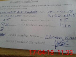 | Attendance Register | Head Teacher | MEA with School | Visit Proof |