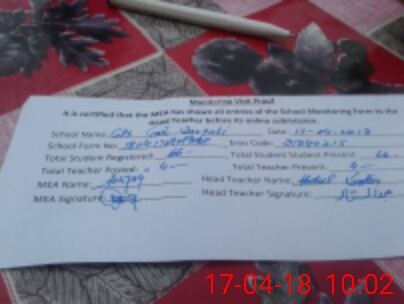 | Attendance Register | Head Teacher | MEA with School | Visit Proof |