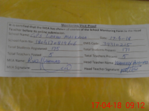 | EMIS Code: 39310215 | Name of School: GPS LAKHU MALKANA | |||
