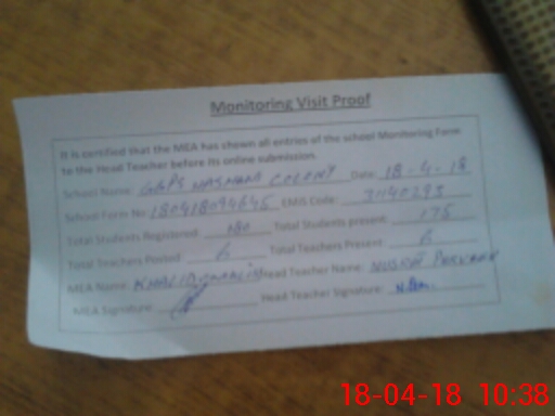 | EMIS Code: 31140293 | Name of School: GGPS HASHAM COLONY | |||