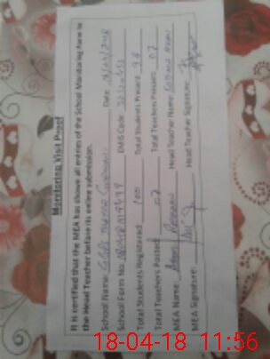| Attendance Register | Head Teacher | MEA with School | Visit Proof |