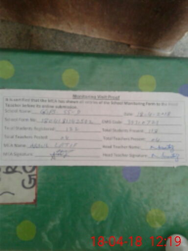 | Attendance Register | Head Teacher | MEA with School | Visit Proof |