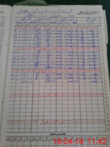 | CNIC | Full Name | Designation | R/C | Absence During Last Calender Month |