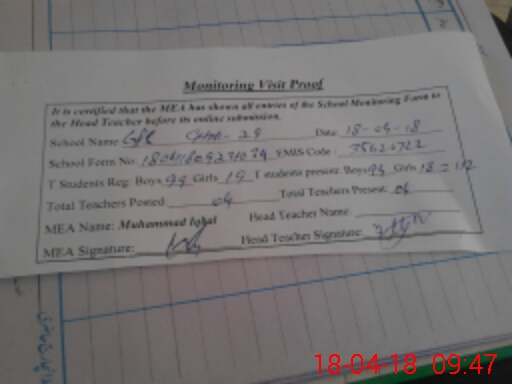 | EMIS Code: 35420722 | Name of School: GPS CHAK 29 MURIDKE | |||