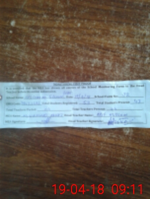 | Attendance Register | Head Teacher | MEA with School | Visit Proof |