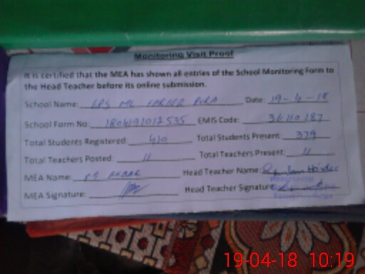 | Certified that this School was Inspected by the Undersigned MEA/DMO Today and the Information Stated Above is as Per Record. | |||||