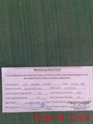 | Attendance Register | Head Teacher | MEA with School | Visit Proof |