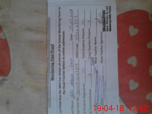 | Certified that this School was Inspected by the Undersigned MEA/DMO Today and the Information Stated Above is as Per Record. | |||||