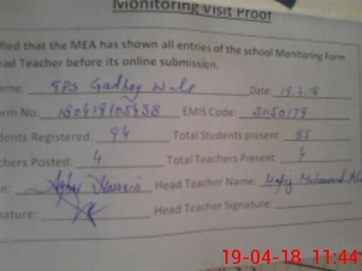 | EMIS Code: 31150179 | Name of School: GPS GADHEY WALA | |||
