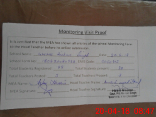 | EMIS Code: 31150413 | Name of School: GPS BISHAN SINGH | |||