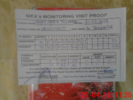 | EMIS Code: 36430125 | Name of School: GGES 18/8-R, TULAMBA | |||