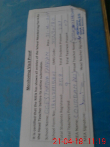 | Attendance Register | Head Teacher | MEA with School | Visit Proof |
