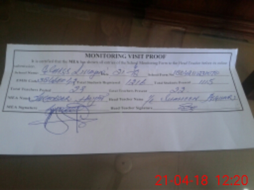 | Attendance Register | Head Teacher | MEA with School | Visit Proof |