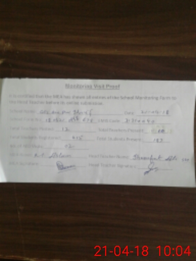 | Attendance Register | Head Teacher | MEA with School | Visit Proof |