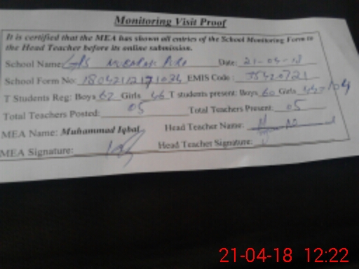 | EMIS Code: 35420721 | Name of School: GPS MUBARAK PURA | |||