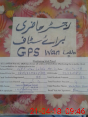 | EMIS Code: 39320187 | Name of School: GPS WAN LAKHA NO 2 | |||