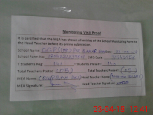 | EMIS Code: 35431158 | Name of School: GGPS MC PIR BAHAR SHAH | |||