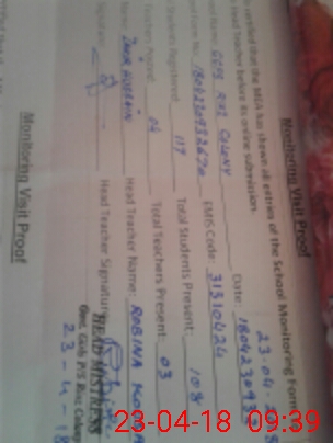 | Monitoring Date: 23-04-2018 | Start Time: 23-04-2018 09:06 AM | End Time: 23-04-2018 10:03 AM | Name of MEA: Za**** Hu**** | |