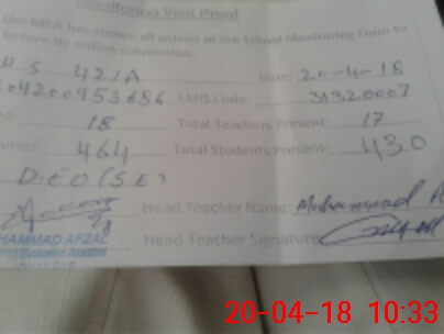 | EMIS Code: 31320007 | Name of School: GHS CHAK 42 A | |||