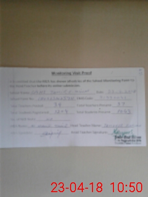 | Attendance Register | Head Teacher | MEA with School | Visit Proof |