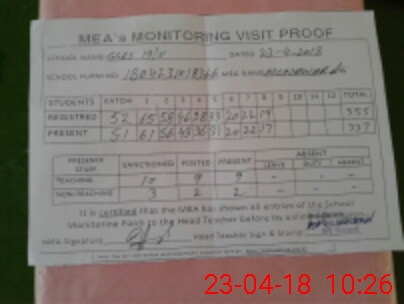 | Attendance Register | Head Teacher | MEA with School | Visit Proof |