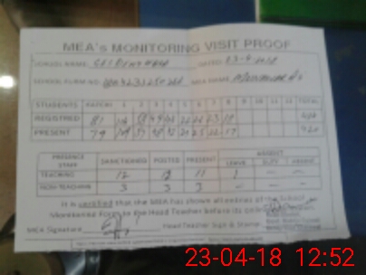 | Attendance Register | Head Teacher | MEA with School | Visit Proof |