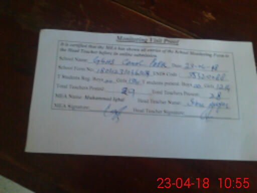 | EMIS Code: 35420088 | Name of School: GGHS CANAL PARK MURIDKE | |||