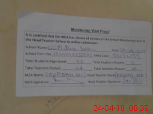 | Certified that this School was Inspected by the Undersigned MEA/DMO Today and the Information Stated Above is as Per Record. | |||||