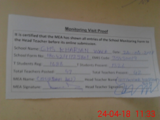 | EMIS Code: 35430019 | Name of School: GHS KHARIAN WALA | |||