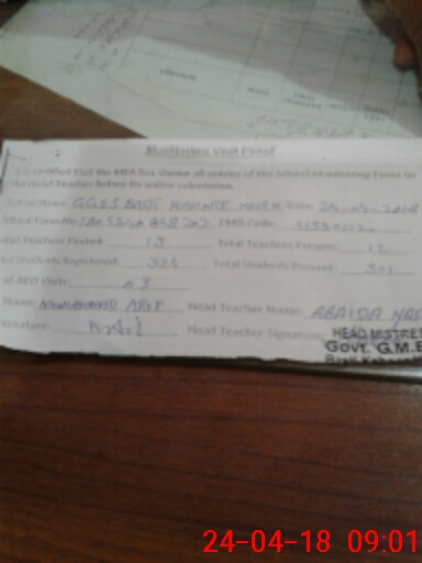 | Certified that this School was Inspected by the Undersigned MEA/DMO Today and the Information Stated Above is as Per Record. | |||||
