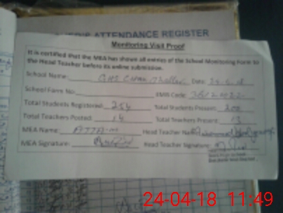 | Attendance Register | Head Teacher | MEA with School | Visit Proof |