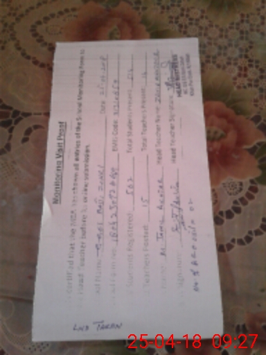 | Attendance Register | Head Teacher | MEA with School | Visit Proof |