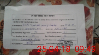 | Monitoring Date: 25-04-2018 | Start Time: 25-04-2018 09:00 AM | End Time: 25-04-2018 09:49 AM | Name of MEA: GH**** MU**** BN**** | |