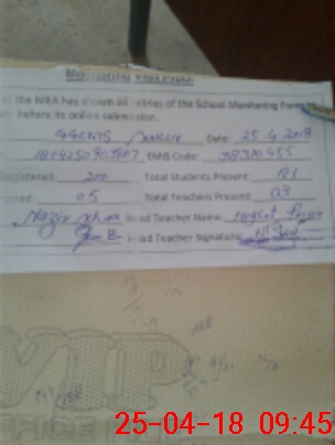 | Monitoring Date: 25-04-2018 | Start Time: 25-04-2018 09:03 AM | End Time: 25-04-2018 09:50 AM | Name of MEA: Na**** Kh**** (R**** | |