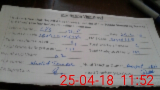 | Monitoring Date: 25-04-2018 | Start Time: 25-04-2018 11:19 AM | End Time: 25-04-2018 11:55 AM | Name of MEA: Kh**** Ta**** | |