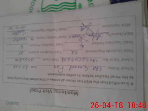 | Certified that this School was Inspected by the Undersigned MEA/DMO Today and the Information Stated Above is as Per Record. | |||||