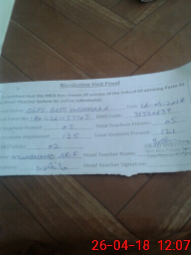 | Certified that this School was Inspected by the Undersigned MEA/DMO Today and the Information Stated Above is as Per Record. | |||||