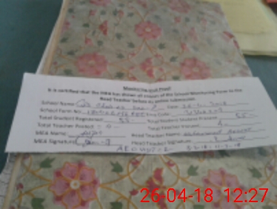 | Attendance Register | Head Teacher | MEA with School | Visit Proof |