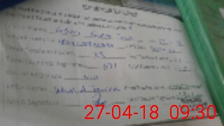 | Monitoring Date: 27-04-2018 | Start Time: 27-04-2018 08:21 AM | End Time: 27-04-2018 09:31 AM | Name of MEA: Kh**** Ta**** | |