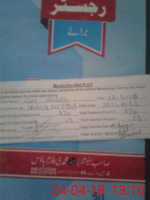 | Attendance Register | Head Teacher | MEA with School | Visit Proof |