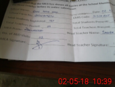 | Attendance Register | Head Teacher | MEA with School | Visit Proof |