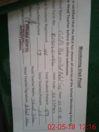 | EMIS Code: 35220403 | Name of School: GGPS PAK UNITED BILAL GUNJ (Working in Khokhar Pind) | |||