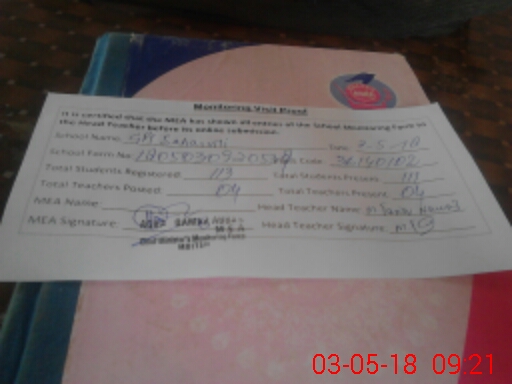| Attendance Register | Head Teacher | MEA with School | Visit Proof |