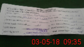 | Monitoring Date: 03-05-2018 | Start Time: 03-05-2018 08:59 AM | End Time: 03-05-2018 09:46 AM | Name of MEA: SH**** AL**** ZI**** (R**** | |