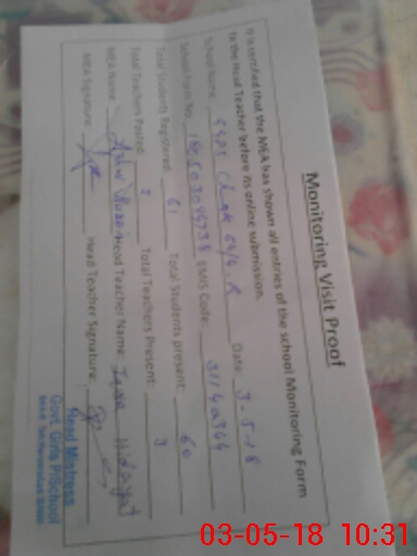 | Certified that this School was Inspected by the Undersigned MEA/DMO Today and the Information Stated Above is as Per Record. | |||||