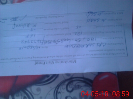 | Monitoring Date: 04-05-2018 | Start Time: 04-05-2018 08:28 AM | End Time: 04-05-2018 09:01 AM | Name of MEA: MU**** SH**** | |