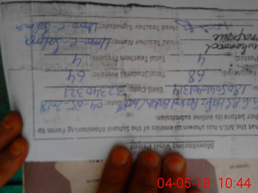| Monitoring Date: 04-05-2018 | Start Time: 04-05-2018 10:15 AM | End Time: 04-05-2018 10:45 AM | Name of MEA: MU**** SH**** | |