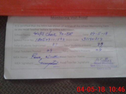 | Attendance Register | Head Teacher | MEA with School | Visit Proof |